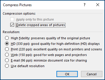 Here we are going to find the option we are looking for, the one called Compress images, where we click. Then a new window will appear where we already can choose the image quality that we want to use for any photo of the document we are working on now.