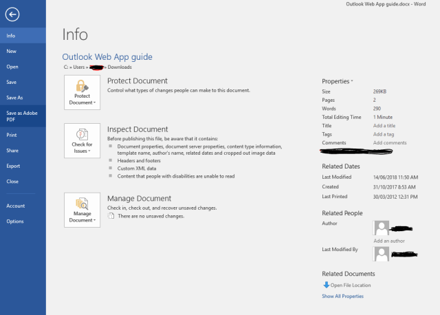 Everything will also depend on the power of the equipment as such, or on the resources that Word has at that moment. To be able to check the size of the document first hand, we can do that from the Windows File Explorer. To check this without leaving Word, we can also do it from the File / Information menu option. Here we will see various data about the document, such as the authors, the current number of words, or size.